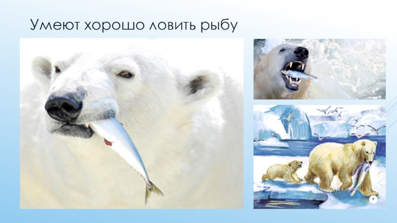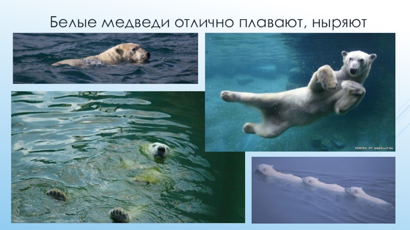 Слайд 6 Белые медведи отлично плавают, ныряют