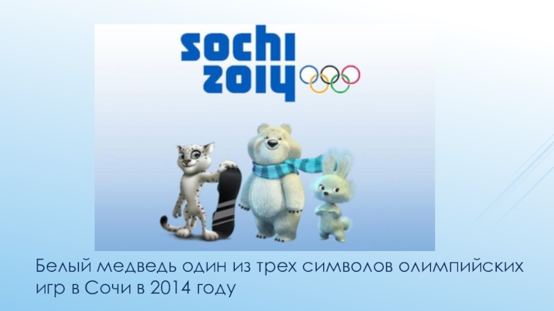 Слайд 15Белый медведь один из трех символов олимпийских игр в Сочи в
