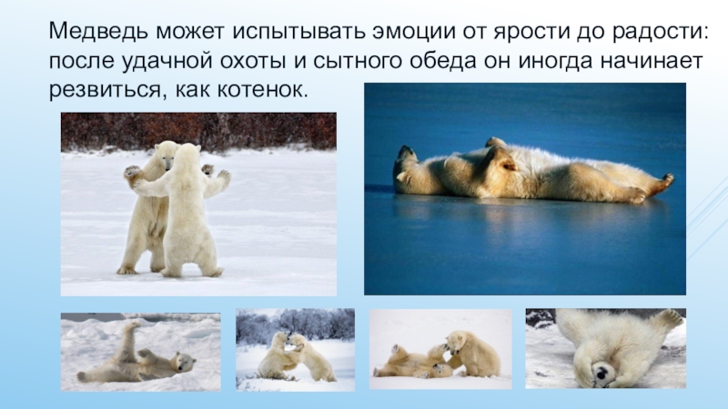 Слайд 11Медведь может испытывать эмоции от ярости до радости: после удачной охоты