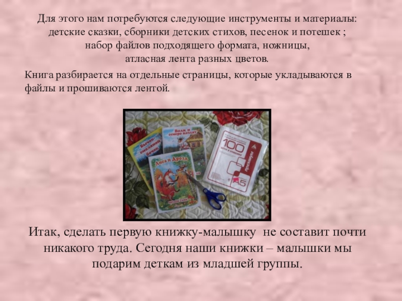 Итак, сделать первую книжку-малышку не составит почти никакого труда. Сегодня наши книжки – малышки мы подарим деткам из младшей группы.