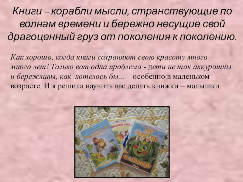 Как хорошо, когда книги сохраняют свою красоту много – много лет! Только вот одна проблема - дети не так аккуратны и бережливы, как хотелось бы... – особенно в маленьком возрасте. И я решила научить вас делать книжки – малышки.