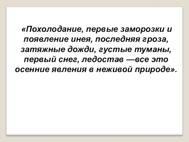 «Похолодание, первые заморозки и появление инея, последняя гроза, затяжные дожди, густые туманы, первый снег, ледостав —все