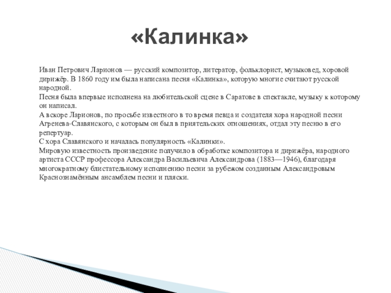 Возможно, история песни связана и с другим обрядом, когда берёзу заламывали с песнями, а затем топили в реке или раскидывали её куски по полю. Считалось, что таким образом вся энергия молодого дерева отдаётся земле для плодородия.
