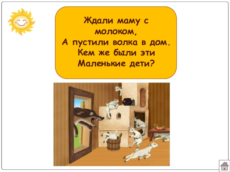 Ждали маму с молоком,А пустили волка в дом.Кем же были этиМаленькие дети?
