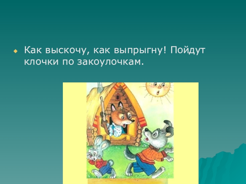 Слайд 23Как выскочу, как выпрыгну! Пойдут клочки по закоулочкам.