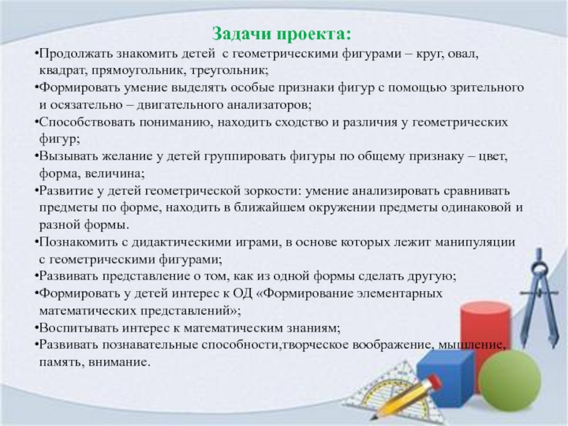 Задачи по ознакомлению детей среднего возраста с формой предметов