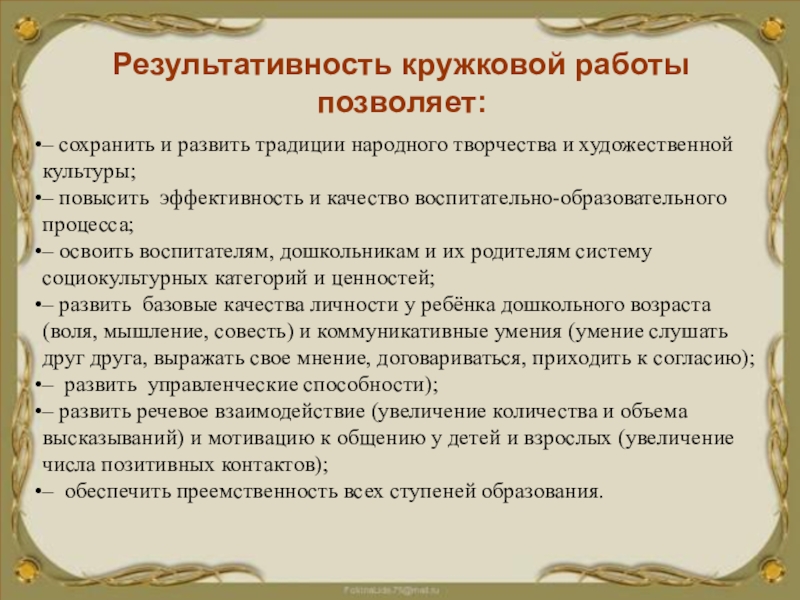 «Сохранение и развитие традиций народного творчества и художественной культуры» в кружковой работе по духовно - нравственному развитию «Истоки»