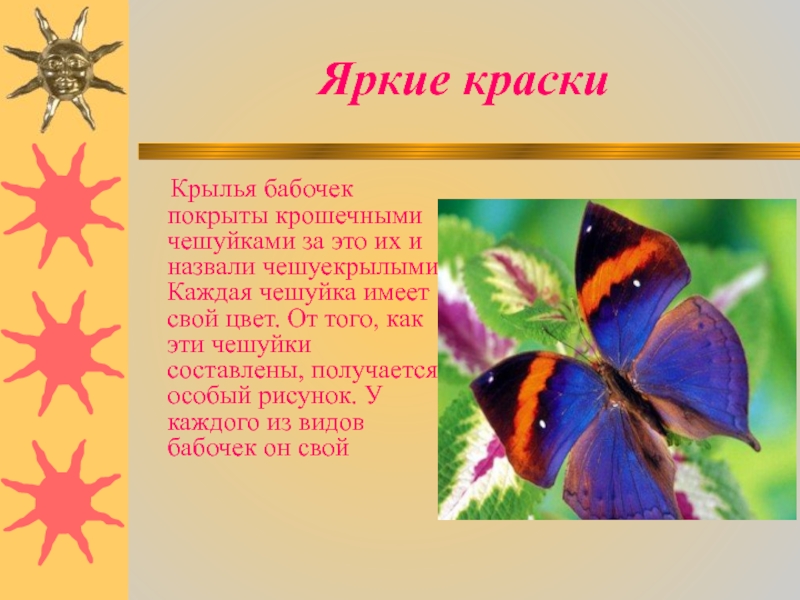 Слайд 4Зрение и восприятие цвета у бабочек довольно слабые. Поэтому, чтобы быть