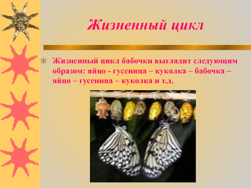 куколка – бабочка – яйцо – гусеница – куколка и т.д.