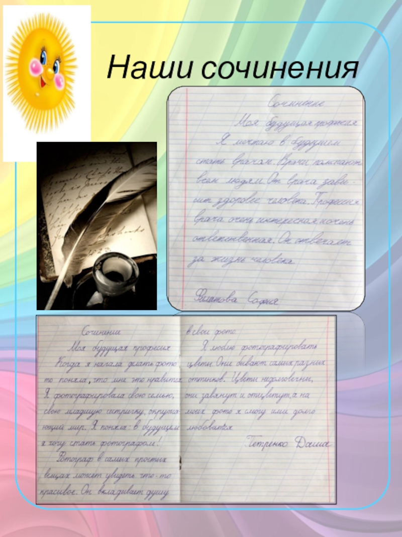 2. «Моя будущая профессия» Дети пишут сочинения о том, кем они хотят стать в будущем.
