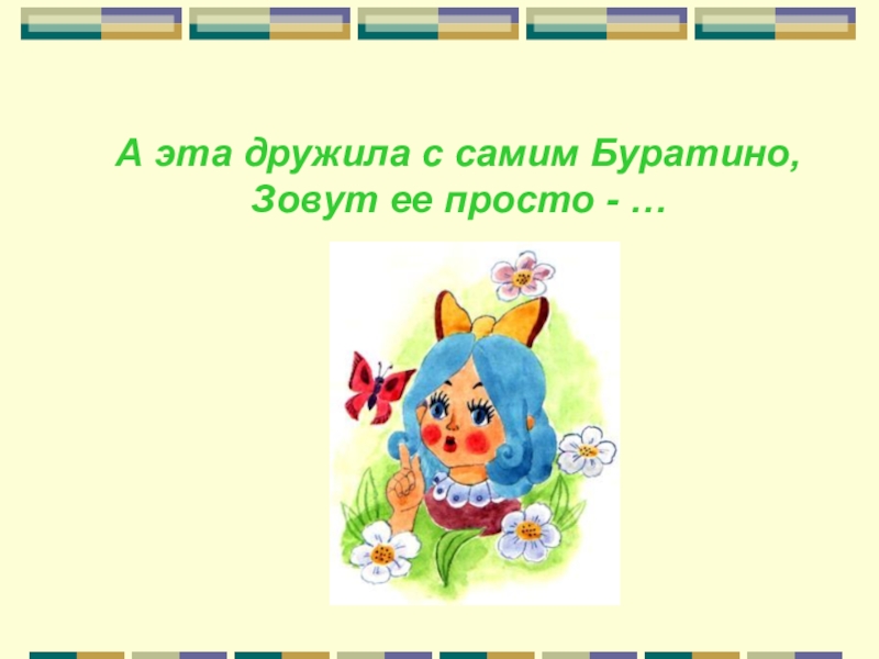 Слайд 12 А эта дружила с самим Буратино, Зовут ее просто