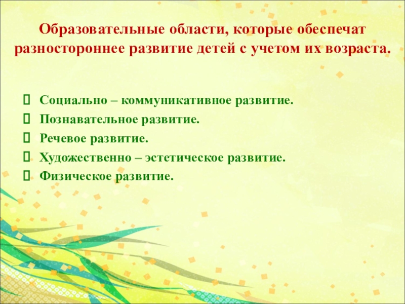 Слайд 3Образовательные области, которые обеспечат разностороннее развитие детей с учетом их возраста.