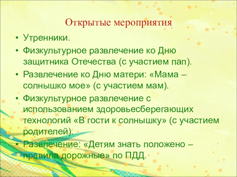 Слайд 11Открытые мероприятия