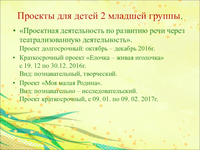Слайд 6Проекты для детей 2 младшей группы.