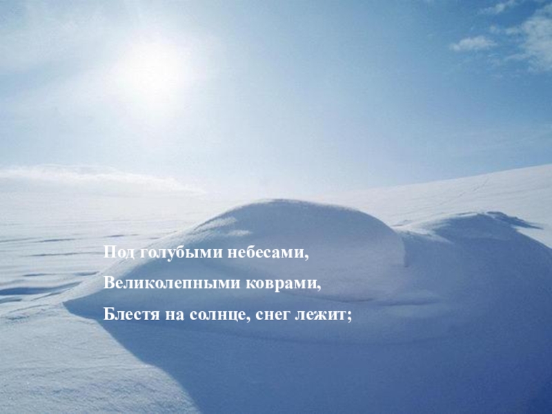 Блестя на солнце, снег