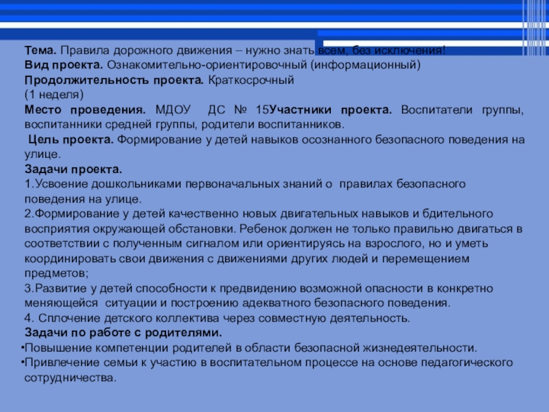Систематизация знаний детей и их родителей по ПДД,