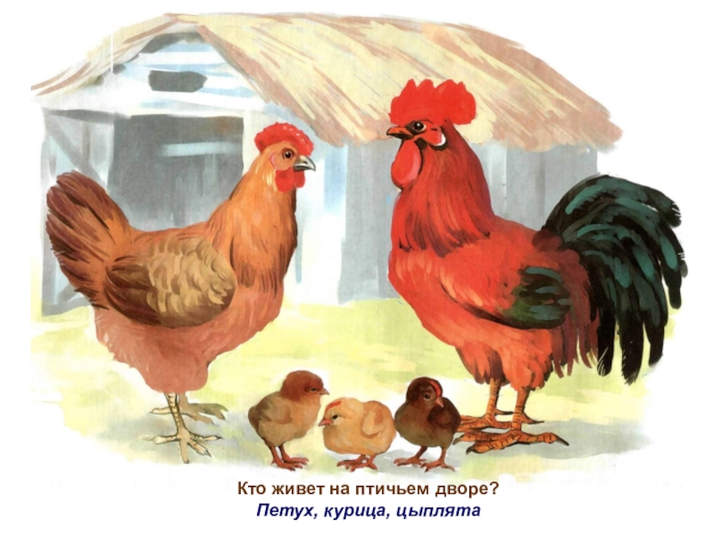 Кто живет на птичьем дворе?Петух, курица, цыплята