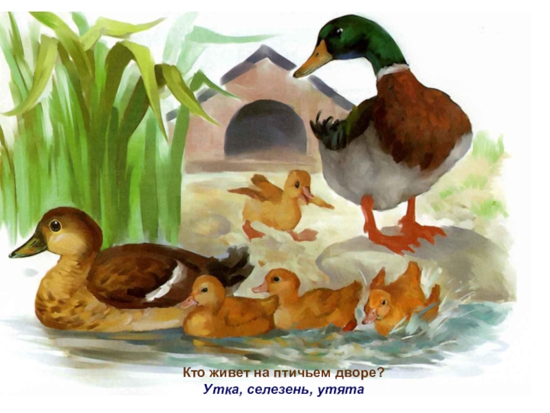 Кто живет на птичьем дворе?Утка, селезень, утята