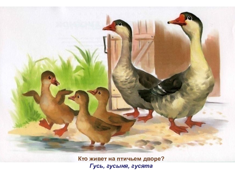 Кто живет на птичьем дворе?Гусь, гусыня, гусята