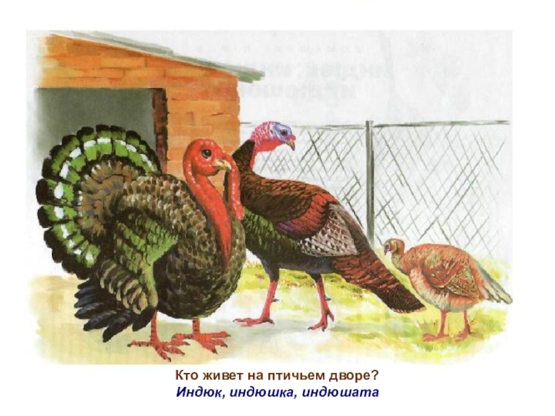 Кто живет на птичьем дворе?Индюк, индюшка, индюшата