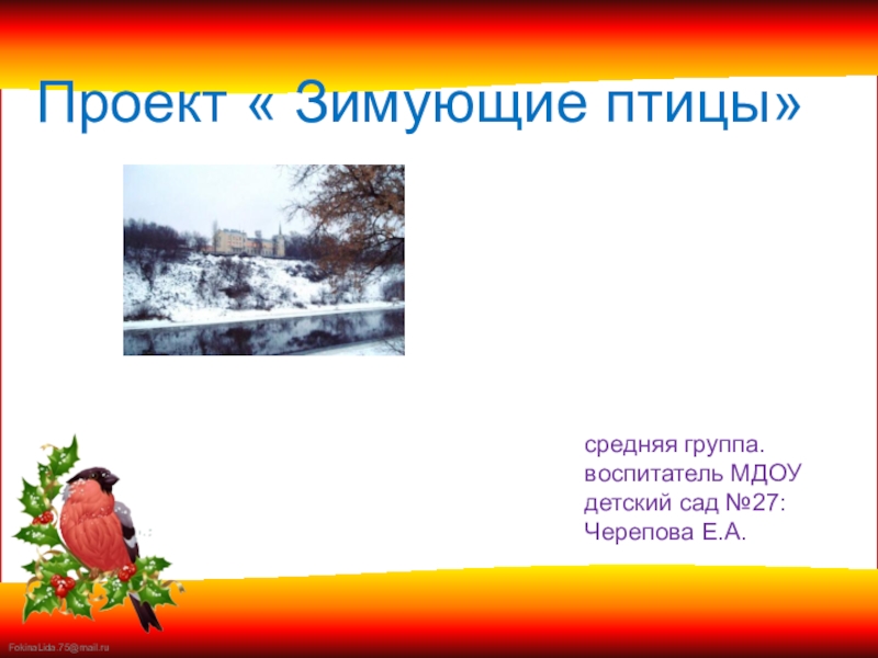 Проект « Зимующие птицы»средняя группа.воспитатель МДОУ детский сад №27:Черепова Е.А.