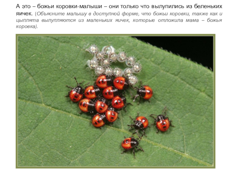 Слайд 5А это – божьи коровки-малыши – они только что вылупились из
