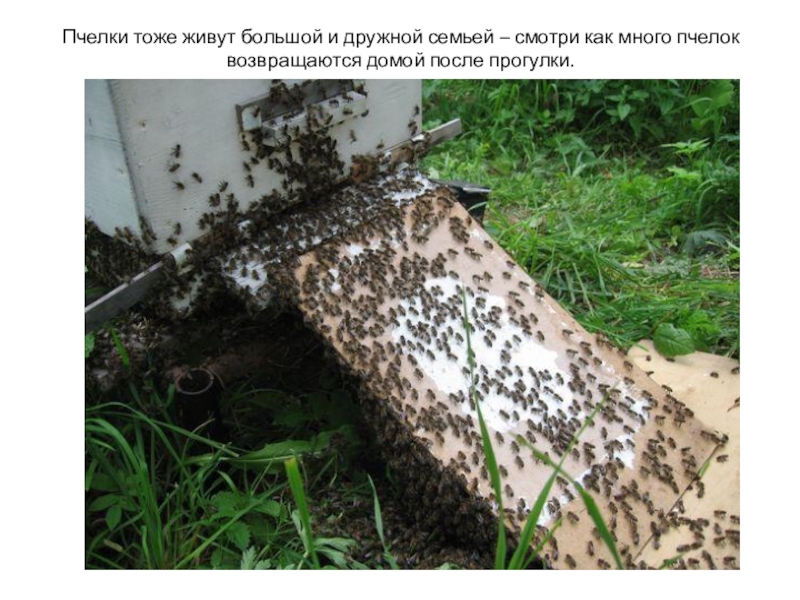 Слайд 15Пчелки тоже живут большой и дружной семьей – смотри как много