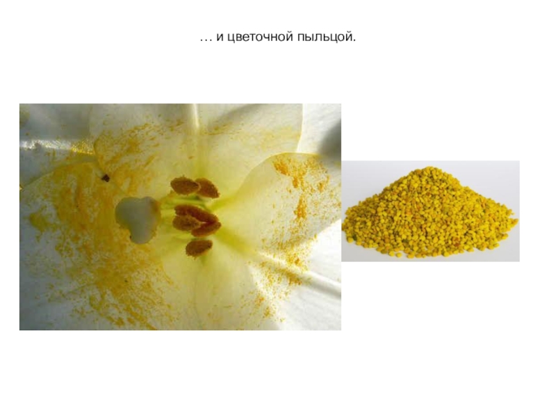 Слайд 19Пчелки питаются вкусным соком цветов – нектаром -…