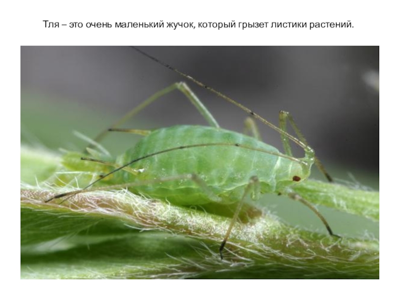 Слайд 7Тля – это очень маленький жучок, который грызет листики растений.