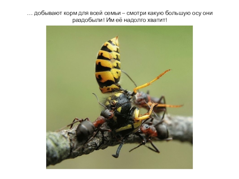 Слайд 12… добывают корм для всей семьи – смотри какую большую осу