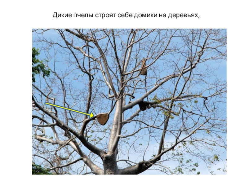 Слайд 17Дикие пчелы строят себе домики на деревьях,