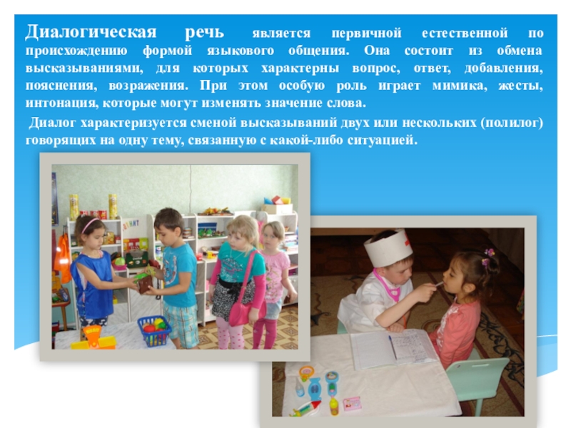 Слайд 7Диалогическая речь является первичной естественной по происхождению формой языкового общения. Она