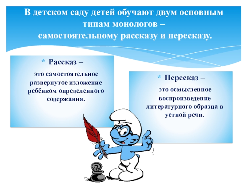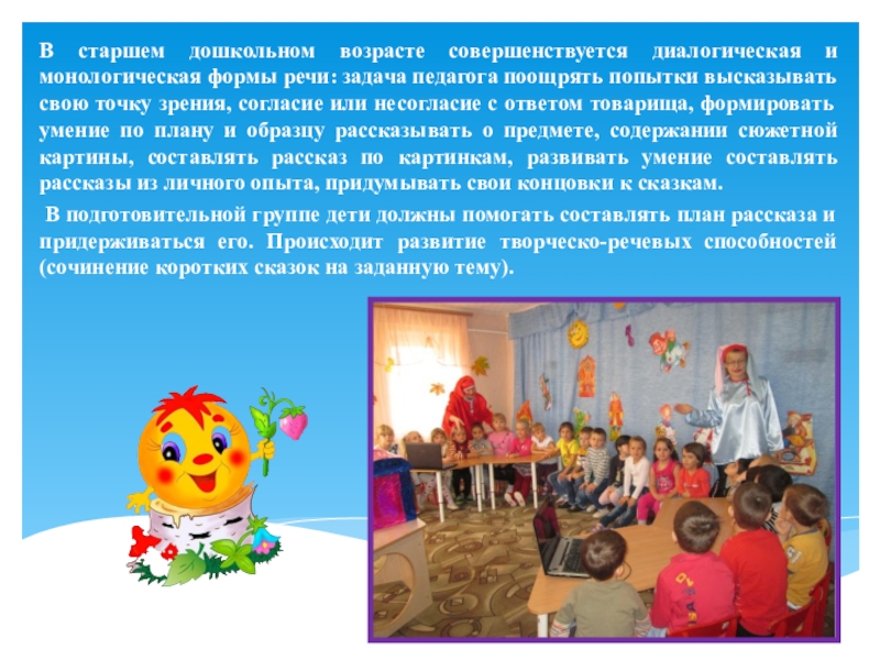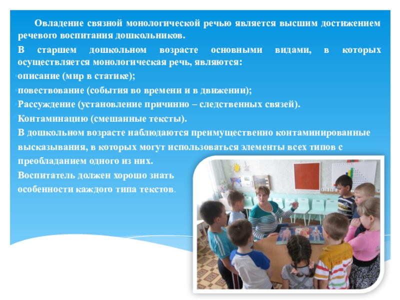 В детском саду детей обучают двум основным типам монологов –