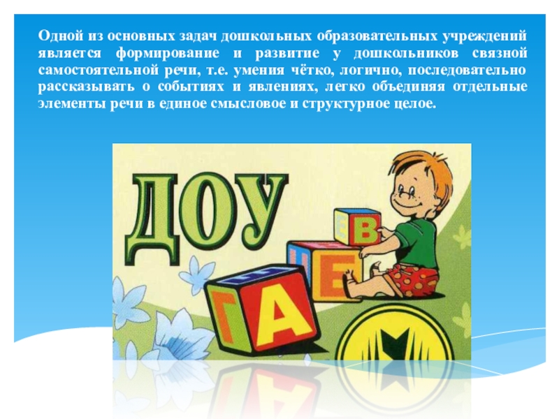 Слайд 3Одной из основных задач дошкольных образовательных учреждений является формирование и развитие