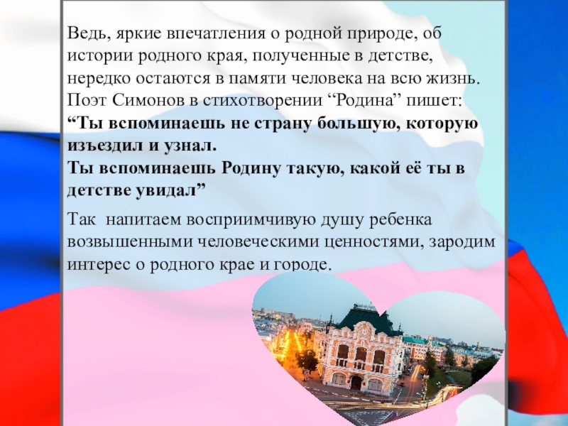 Ведь, яркие впечатления о родной природе, об истории родного края, полученные в детстве, нередко остаются в памяти человека на всю жизнь.