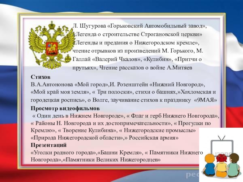 « Один день в Нижнем Новгороде», « Флаг и герб Нижнего Новгорода»,