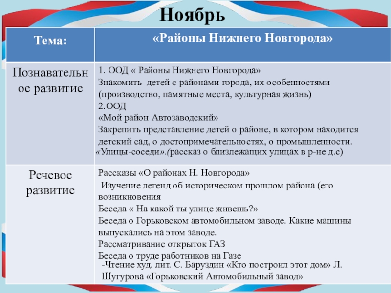 «Мой город Нижний Новгород» , «история происхождения символа города –оленя», « На какой ты улице живешь?», «Горьковский автомобильный завод, какие машины выпускались на этом заводе.»
