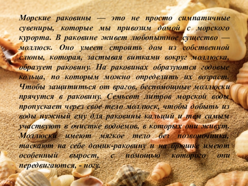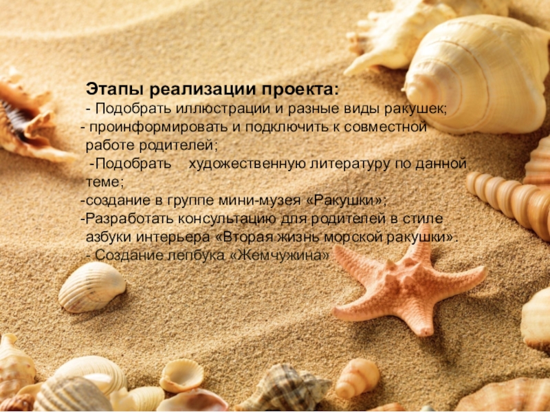 - Подобрать иллюстрации и разные виды ракушек;