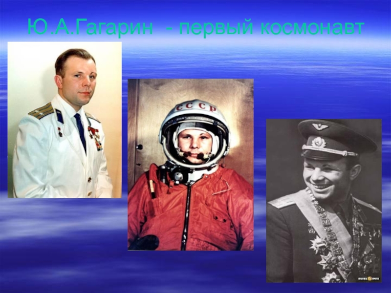 Слайд 10Ю.А.Гагарин - первый космонавт