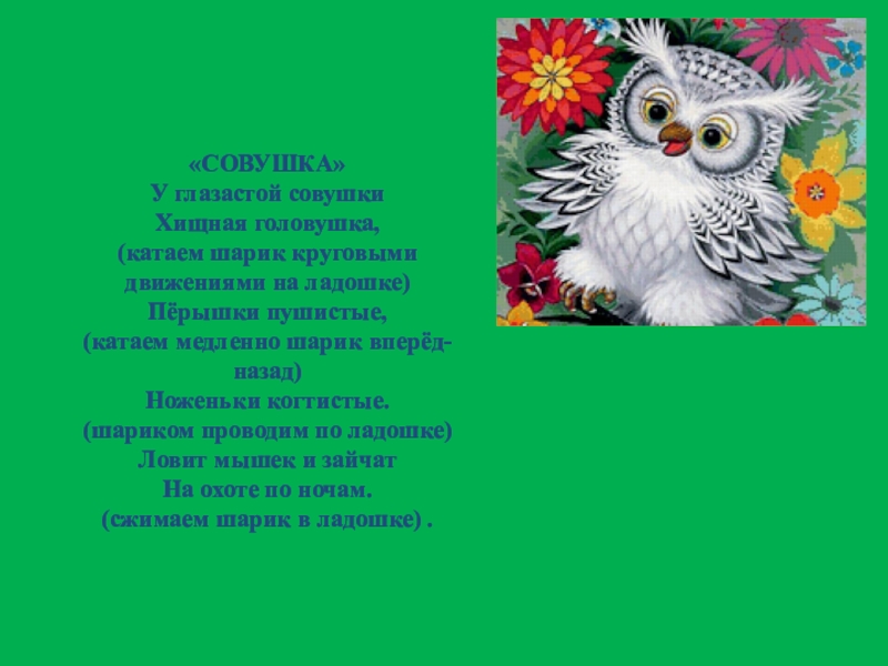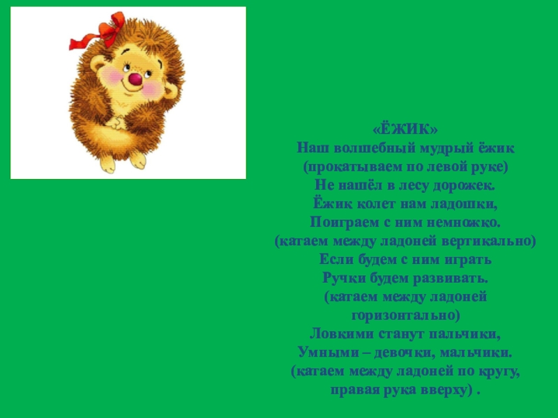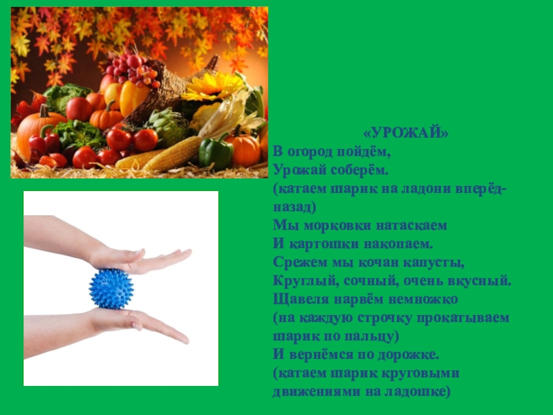 (на каждую строчку прокатываем шарик по пальцу)