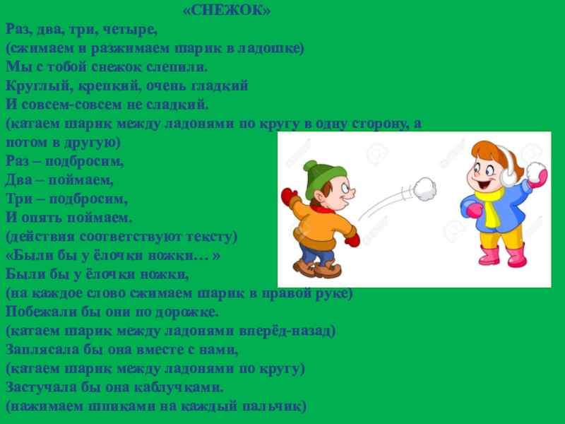 (на каждое слово сжимаем шарик в правой руке)