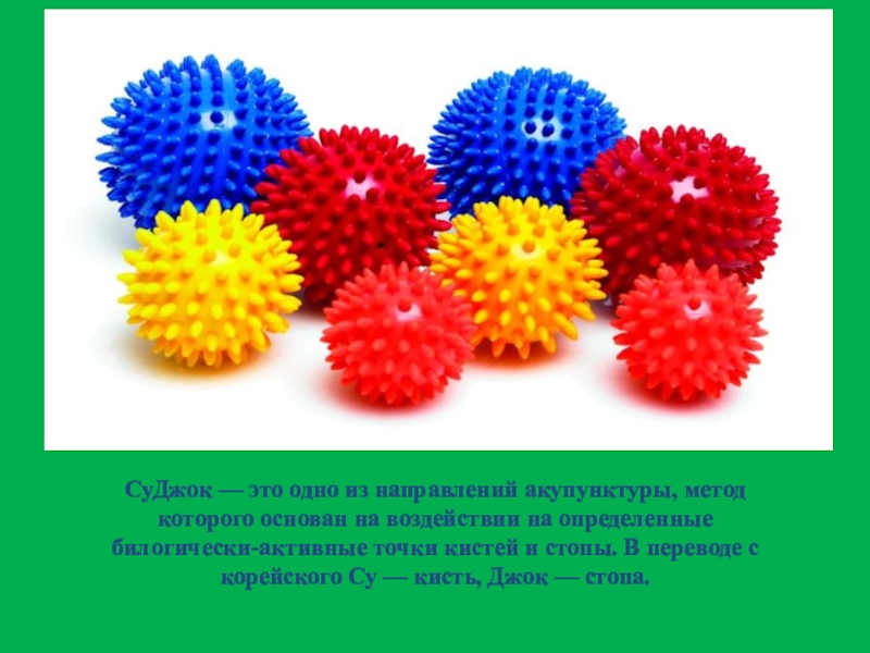 Слайд 2СуДжок — это одно из направлений акупунктуры, метод которого основан на
