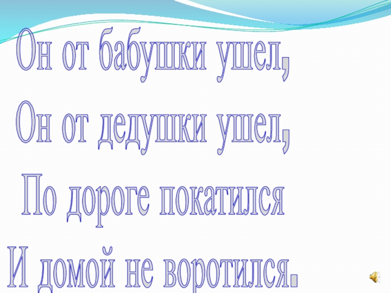 Он от бабушки ушел,Он от дедушки ушел,По дороге покатилсяИ домой не воротился.
