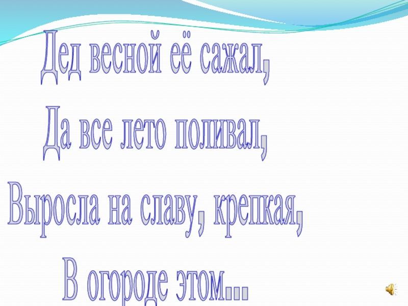 Дед весной её сажал,Да все лето поливал,Выросла на славу, крепкая,В огороде этом...