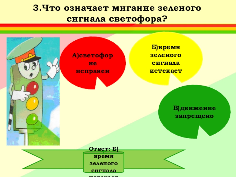 Ответ: Б) время зеленого сигнала истекает