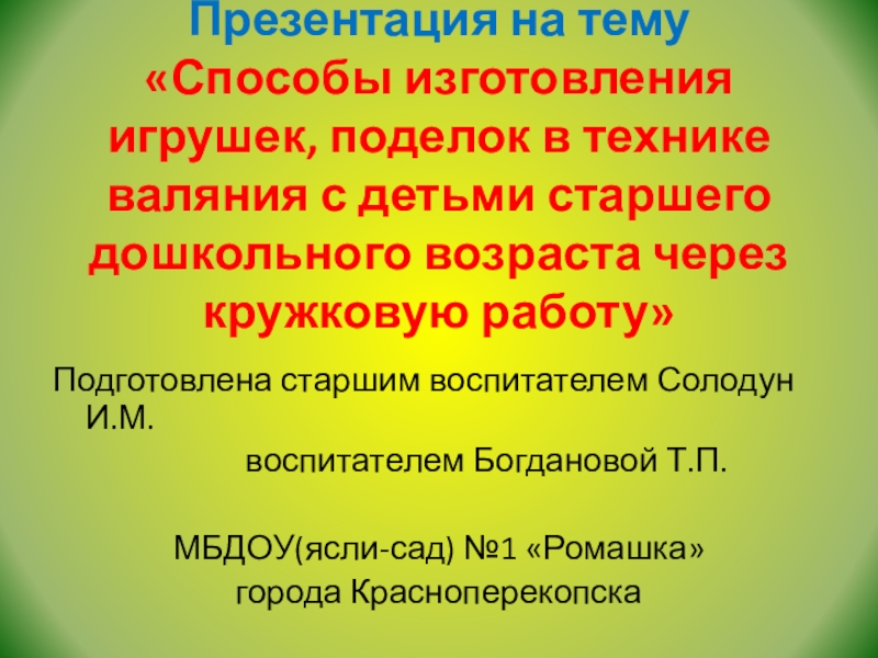 Подготовлена старшим воспитателем Солодун И.М.