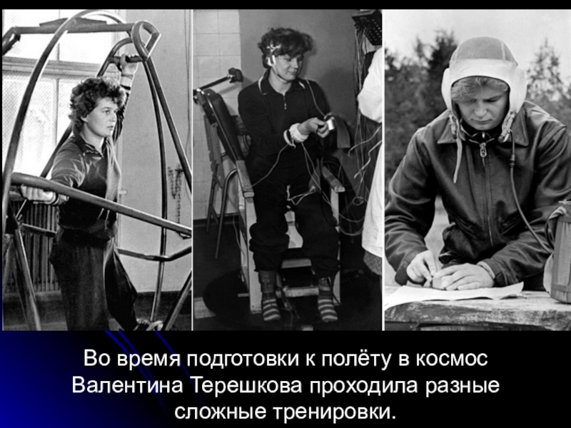 Слайд 6Во время подготовки к полёту в космос Валентина Терешкова проходила разные