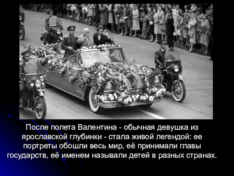 Слайд 10После полета Валентина - обычная девушка из ярославской глубинки - стала