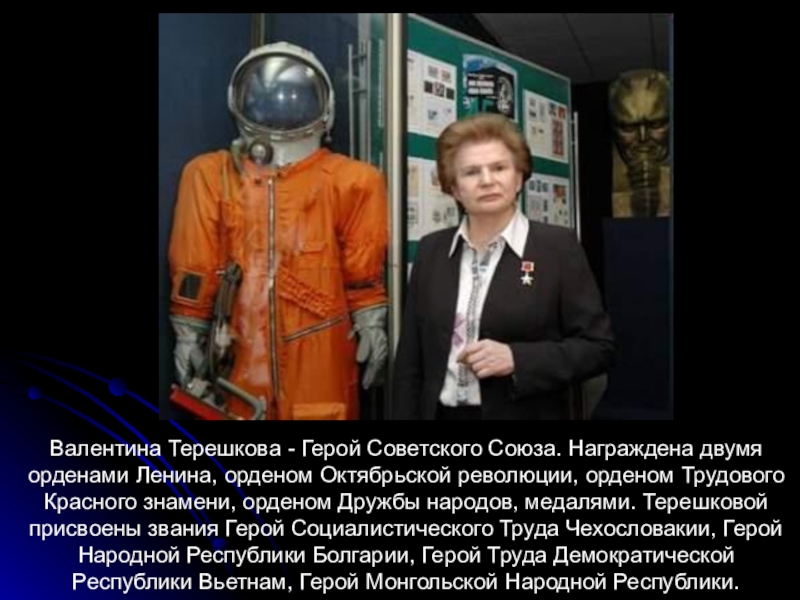 Валентина Терешкова - Герой Советского Союза. Награждена двумя