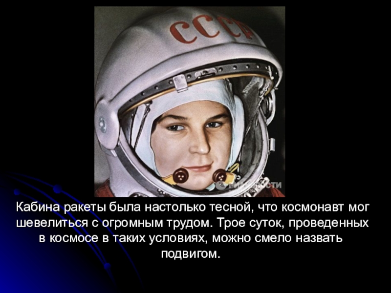 Слайд 8Кабина ракеты была настолько тесной, что космонавт мог шевелиться с огромным